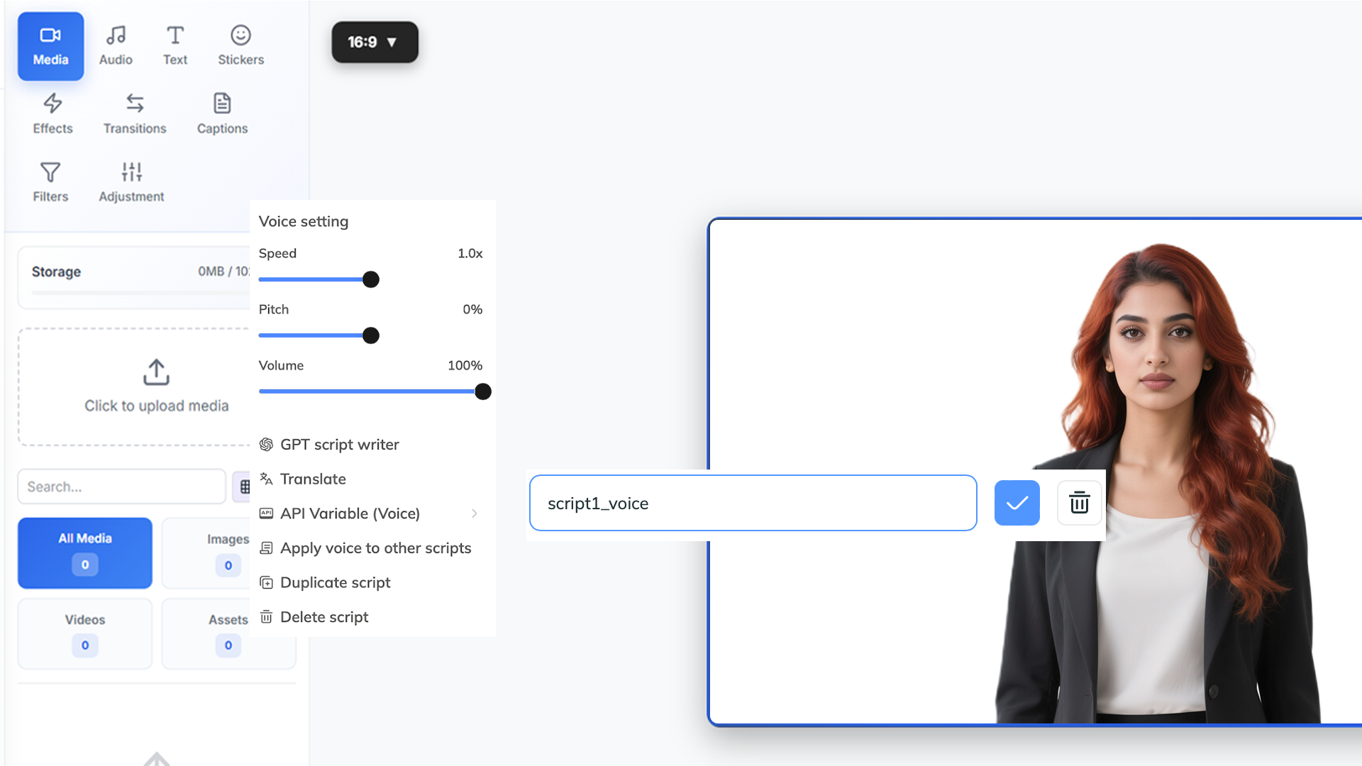 Modify script text and voice in templates using the API